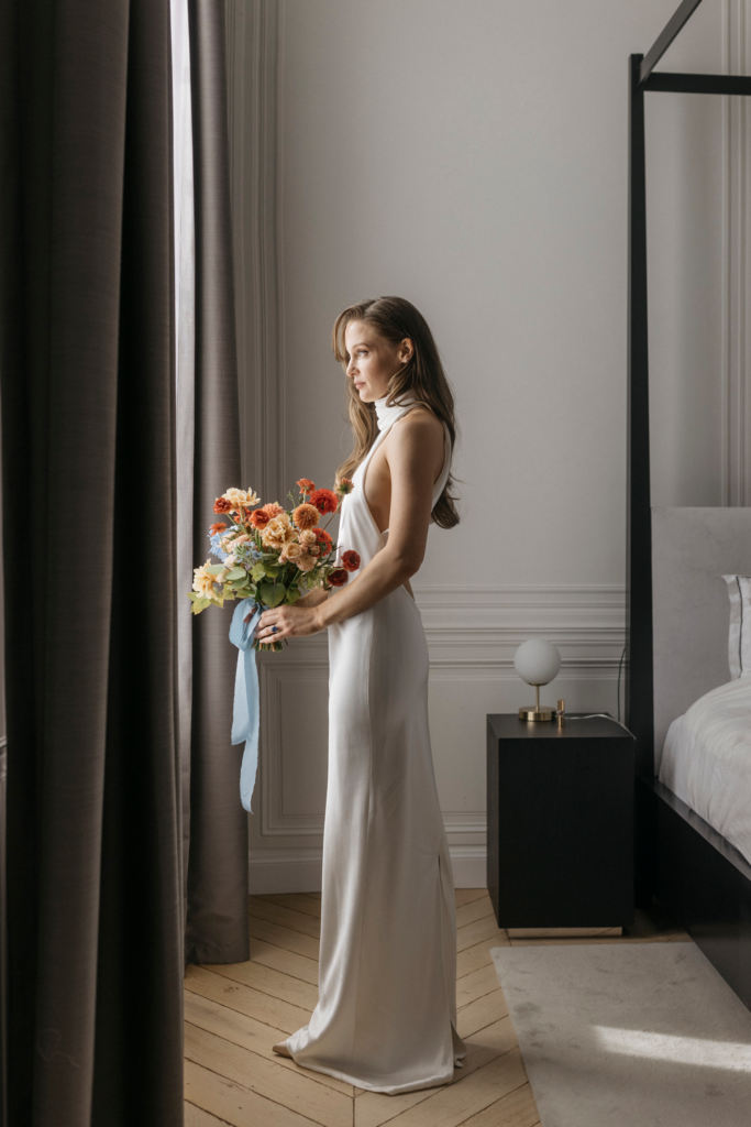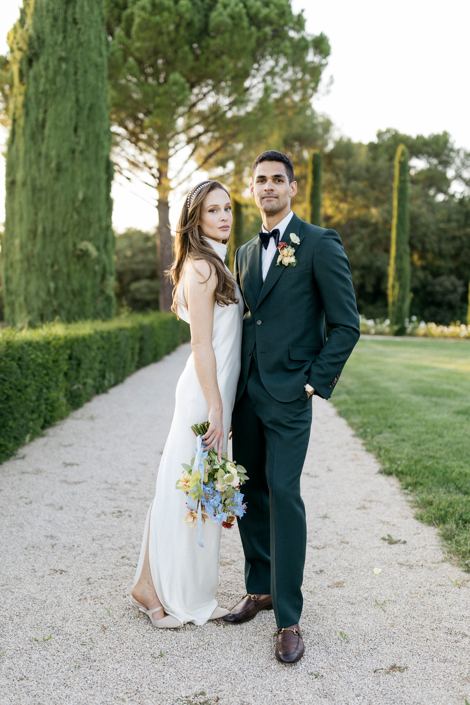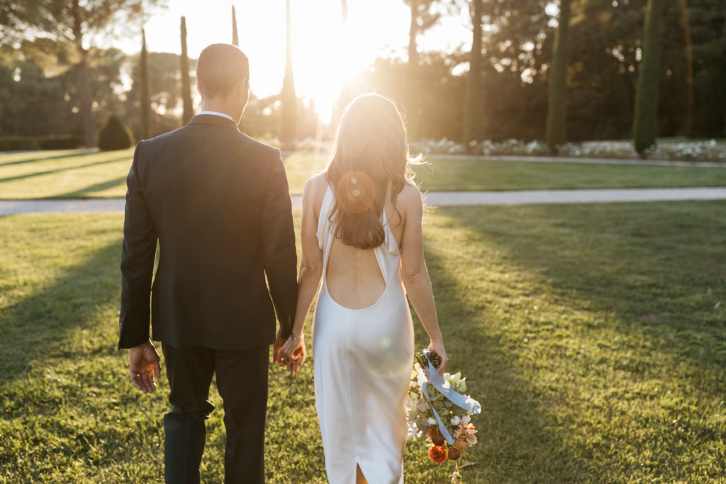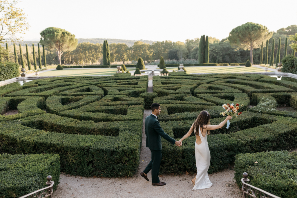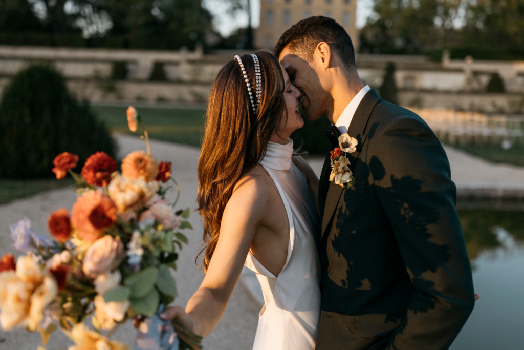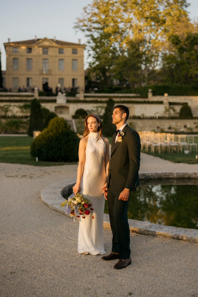 In the heart of the Provencal countryside, a wedding unfolded with an effortlessly cool and organic vibe, bringing a touch of modernity to the timeless beauty of the Chateau de la Gaude park. The ceremony embraced the natural surroundings, with a simple yet stylish setup that allowed the lush greenery to take center stage. The couple exchanged vows under a canopy of delicately suspended blooms, creating an intimate and harmonious atmosphere.