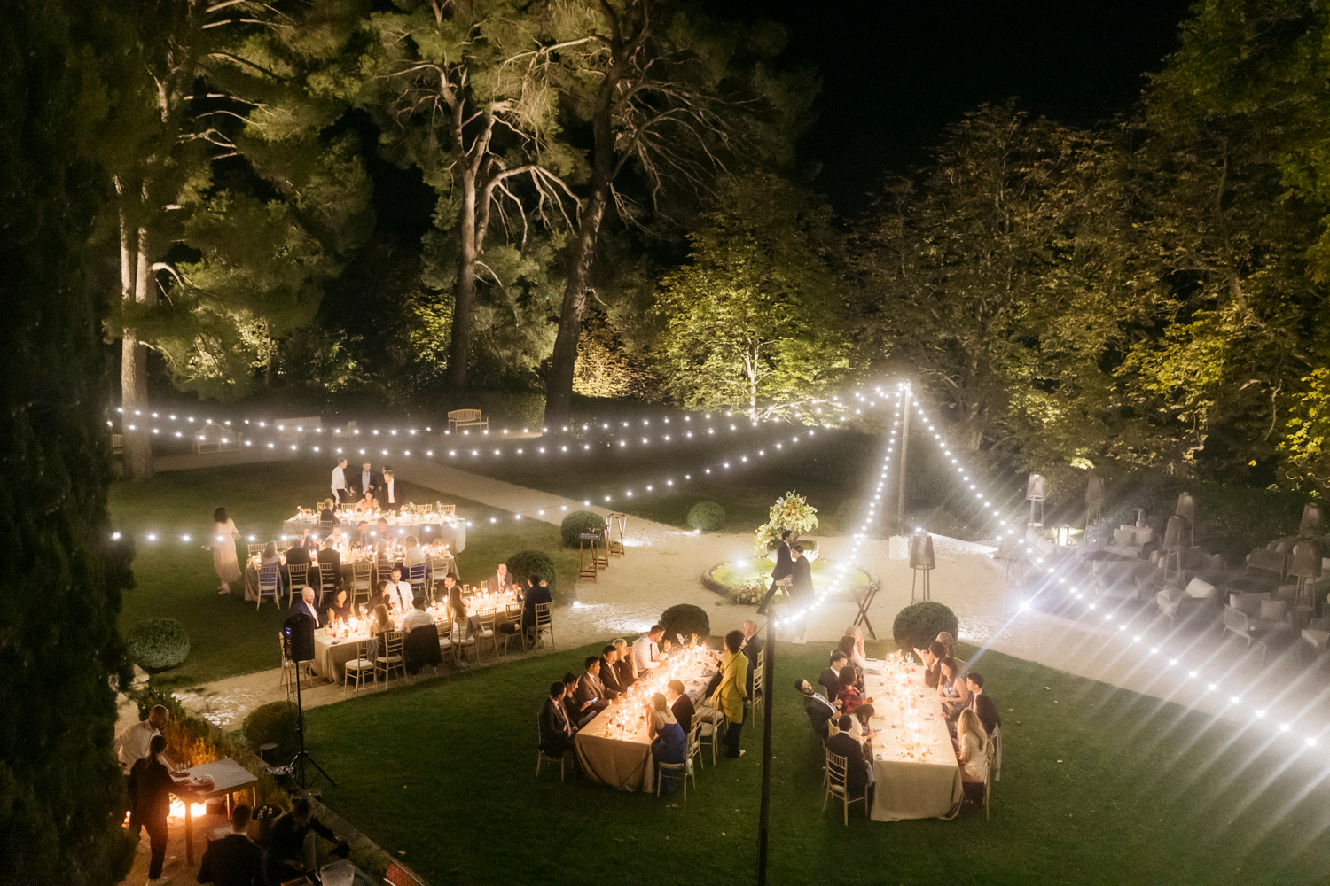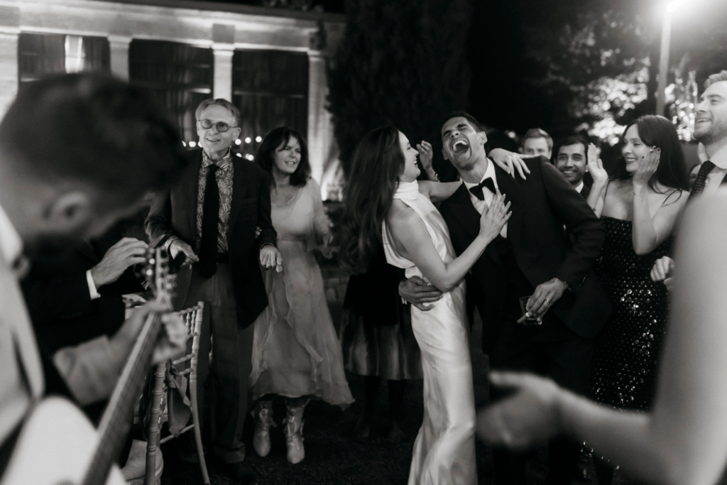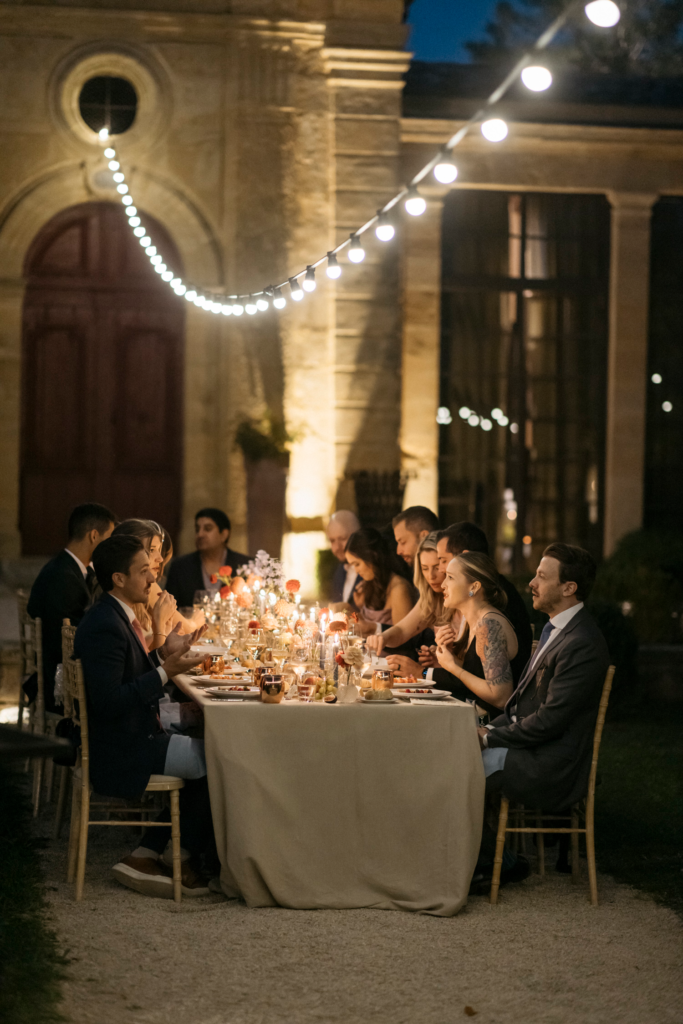 The celebration continued under the starlit sky, with a playlist that seamlessly blended contemporary tunes with timeless classics. The chateau’s park transformed into a magical dance floor, where guests moved freely, embodying the organic and great vibes of the evening.